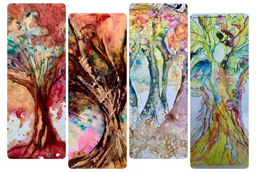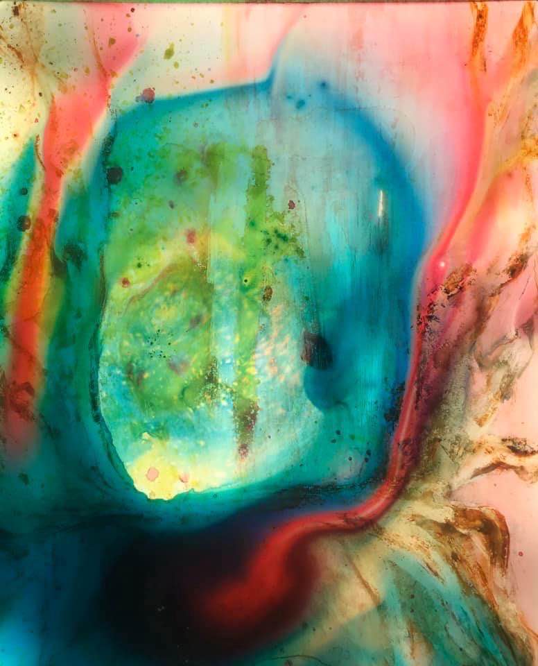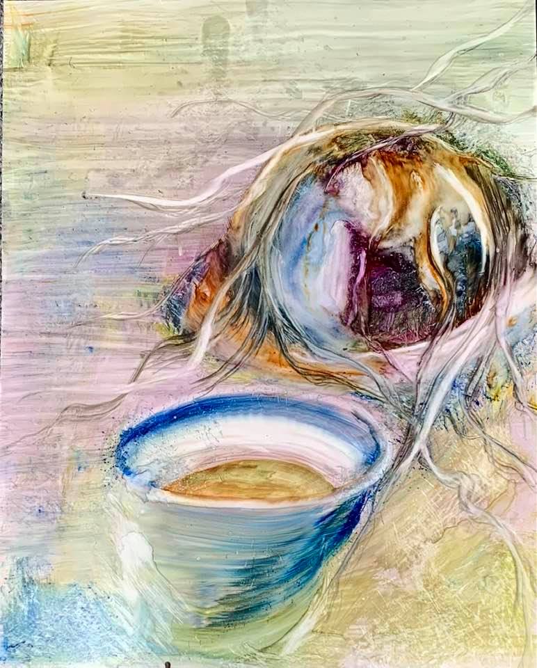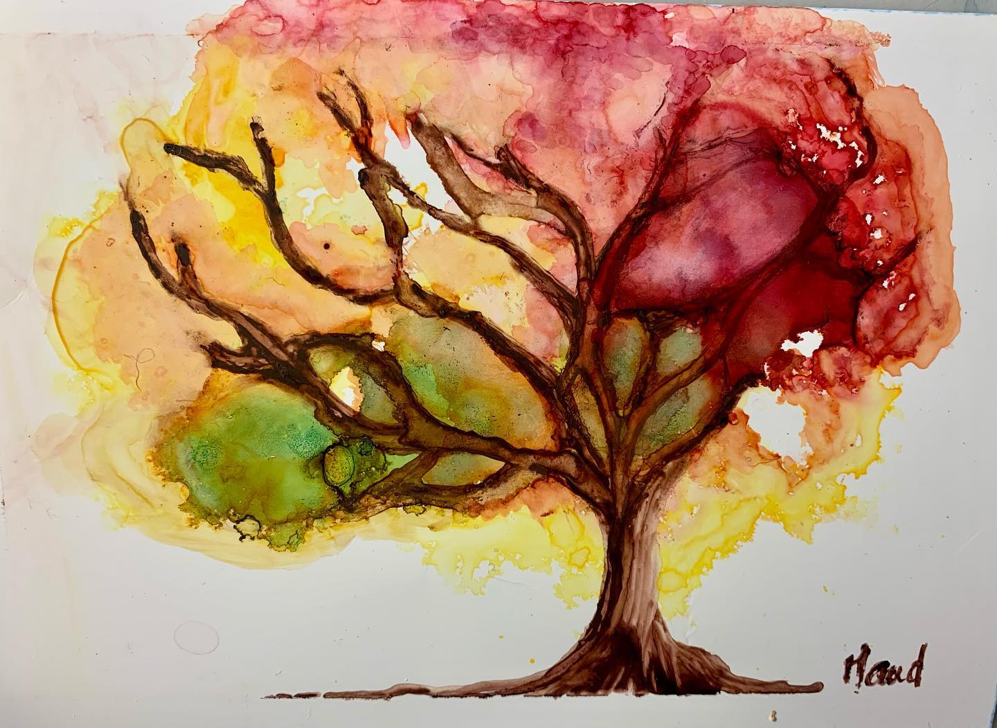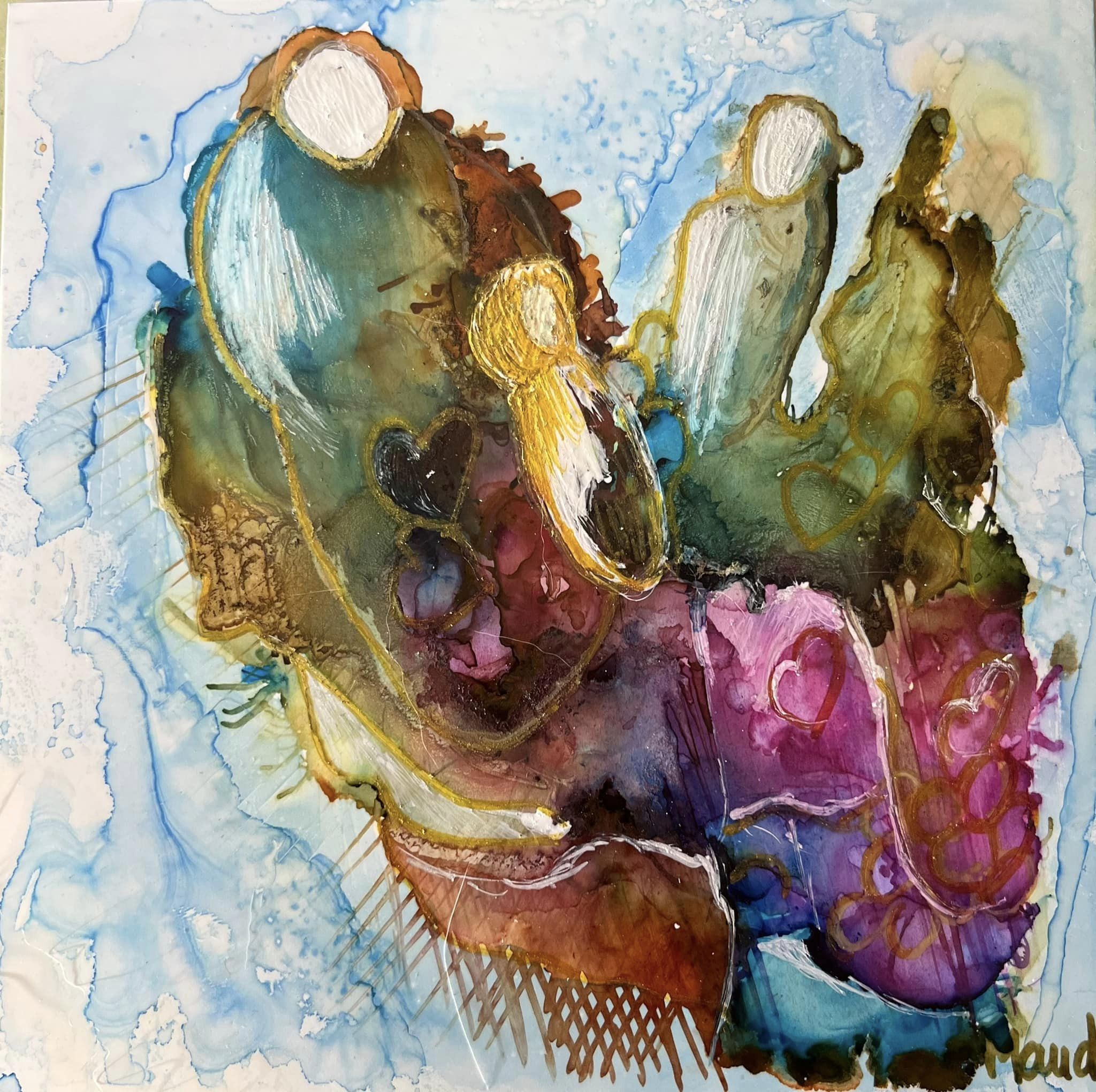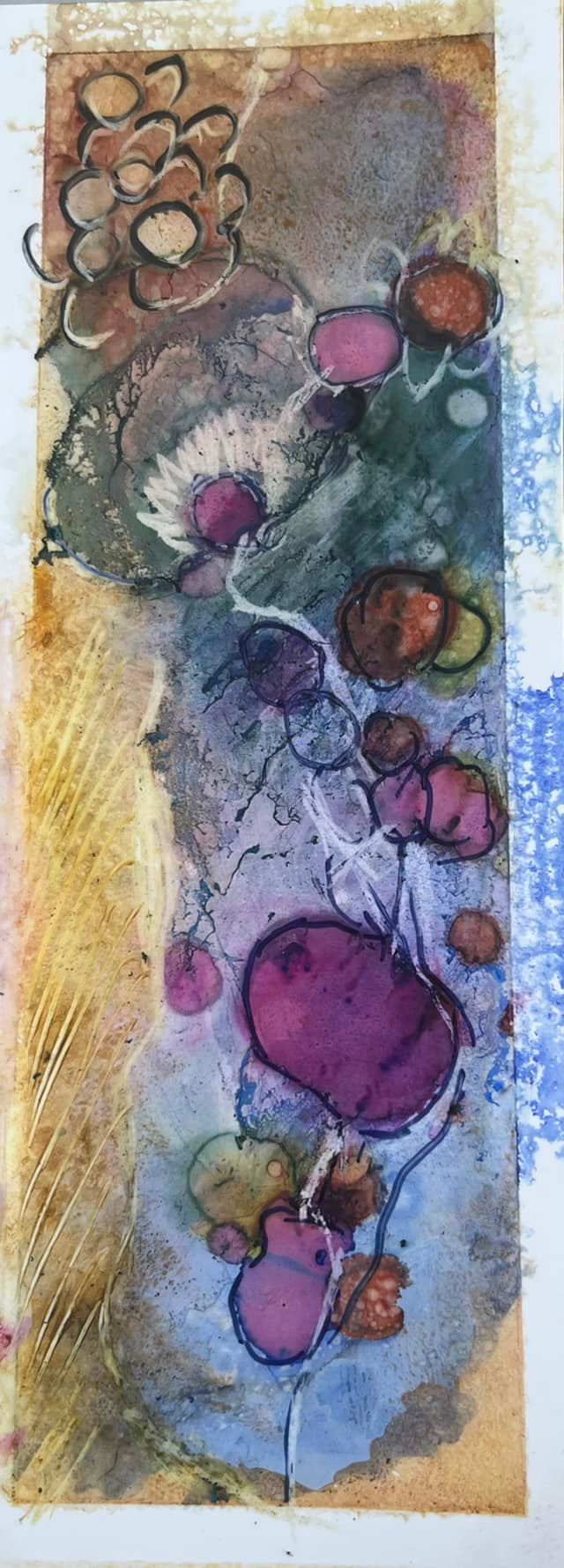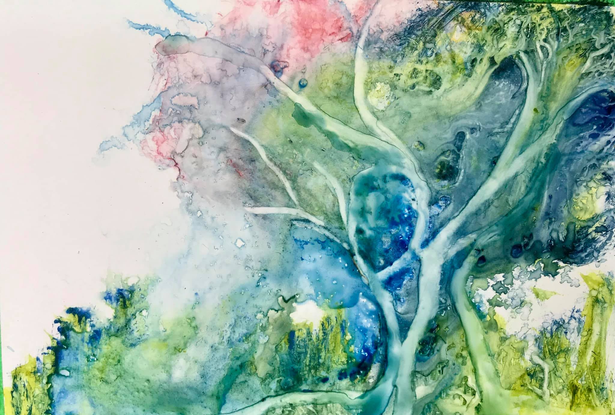 Sur papier Yupo, en utilisant l’eau, les couleurs et les mouvements j’exprime mes émotions, mes états d’âmes comme de l’art thérapie. J’évacue mes tensions, mes émotions plus fortes afin de m’en libérer. J’exprime aussi mes états de sérénité, mon monde intérieur rempli d’images, de couleurs, de mouvements et de symboles. Ma vie intérieure et ma vision de la Vie tel que mon parcours de Vie particulier l’a construit.